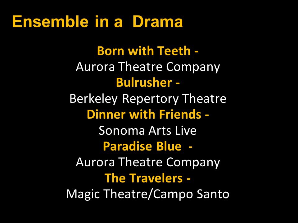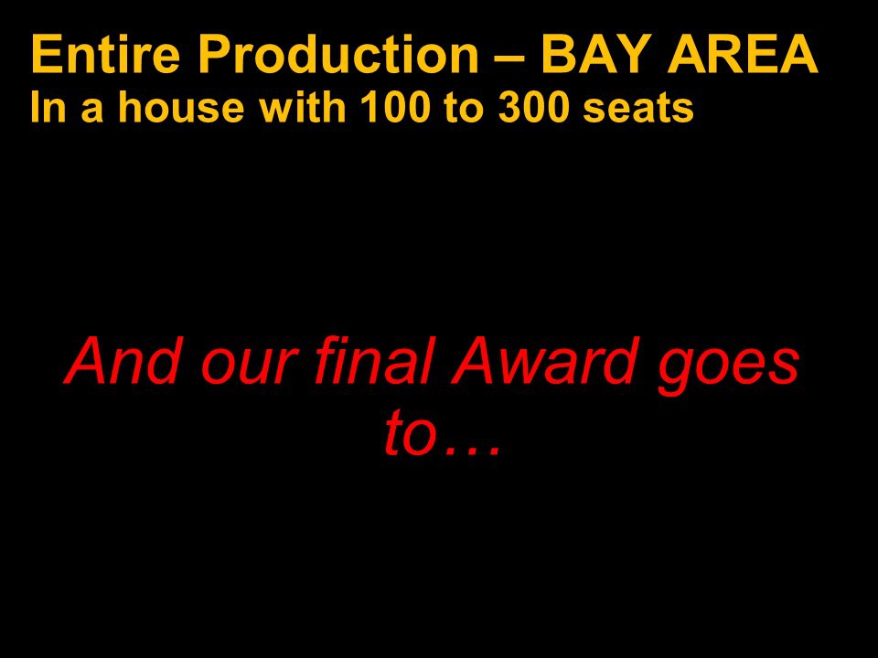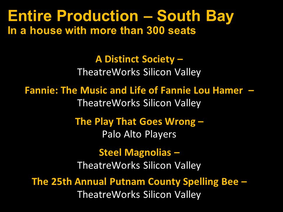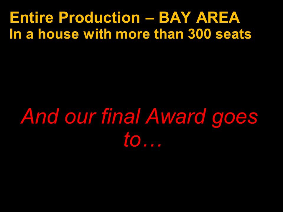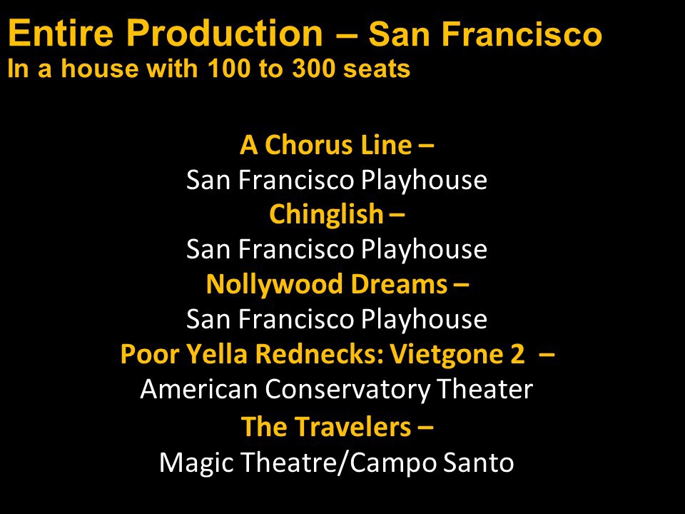 Congratulations again to the entire Bay Area theatre community and our thanks and appreciation to you all for inviting us into your theatrical homes.