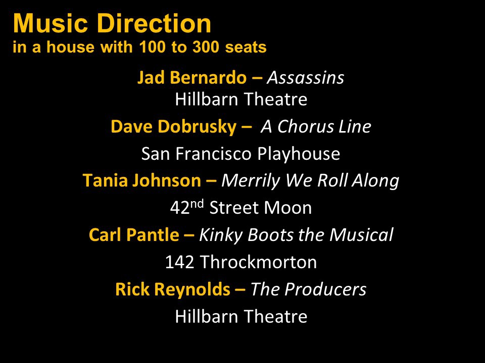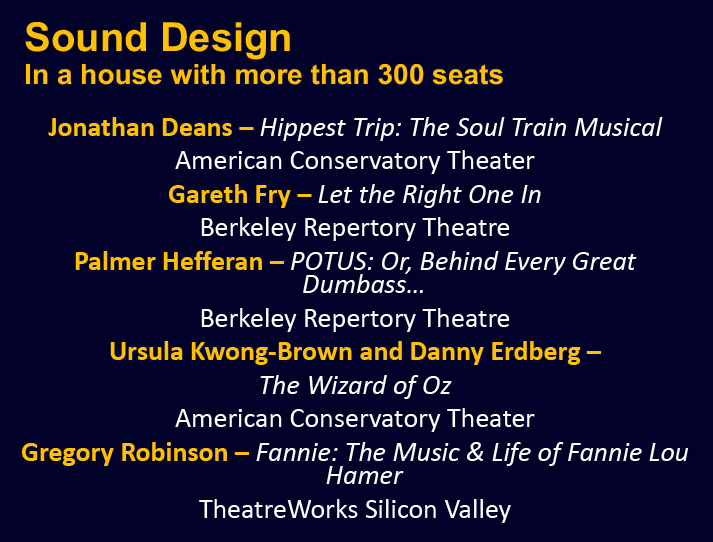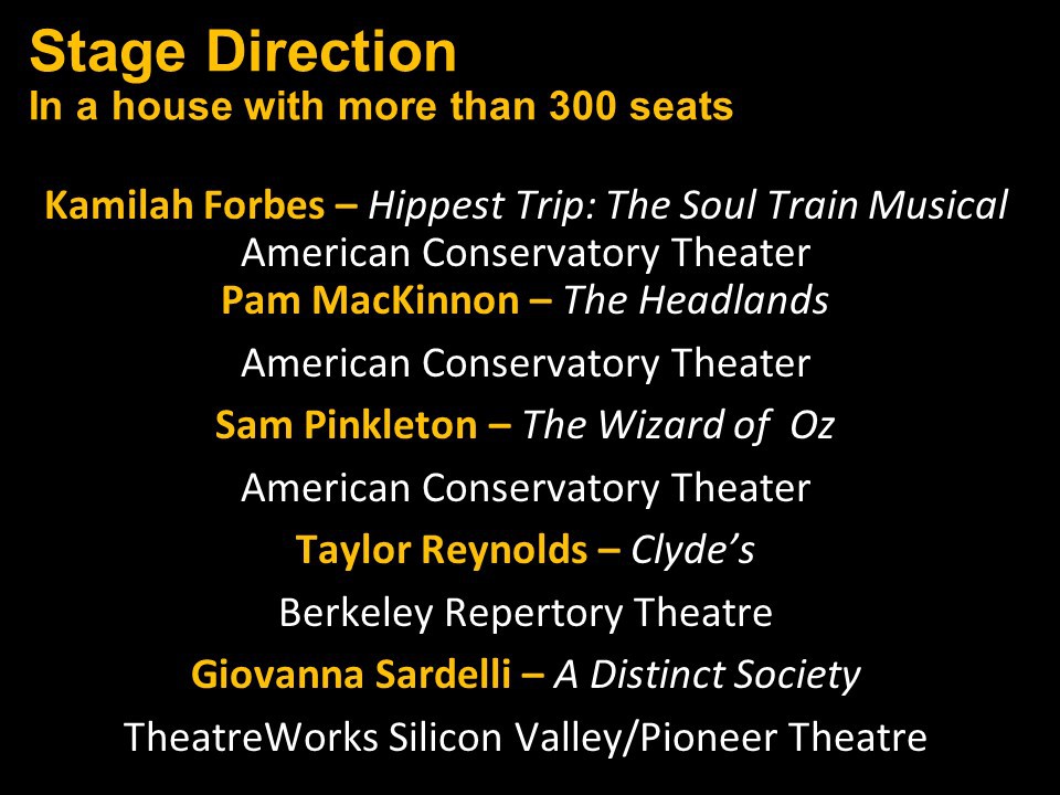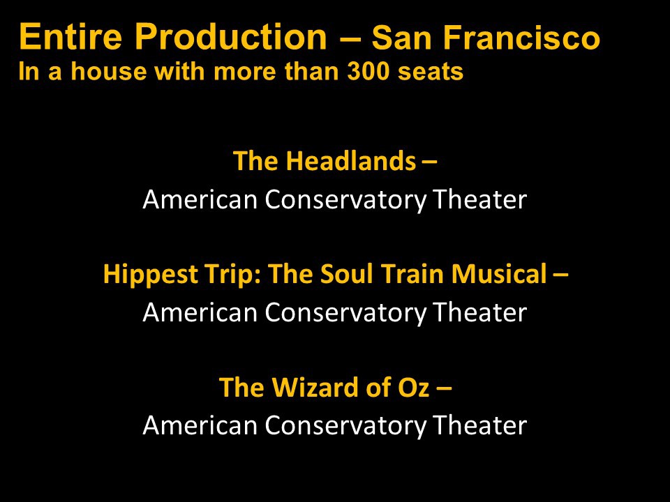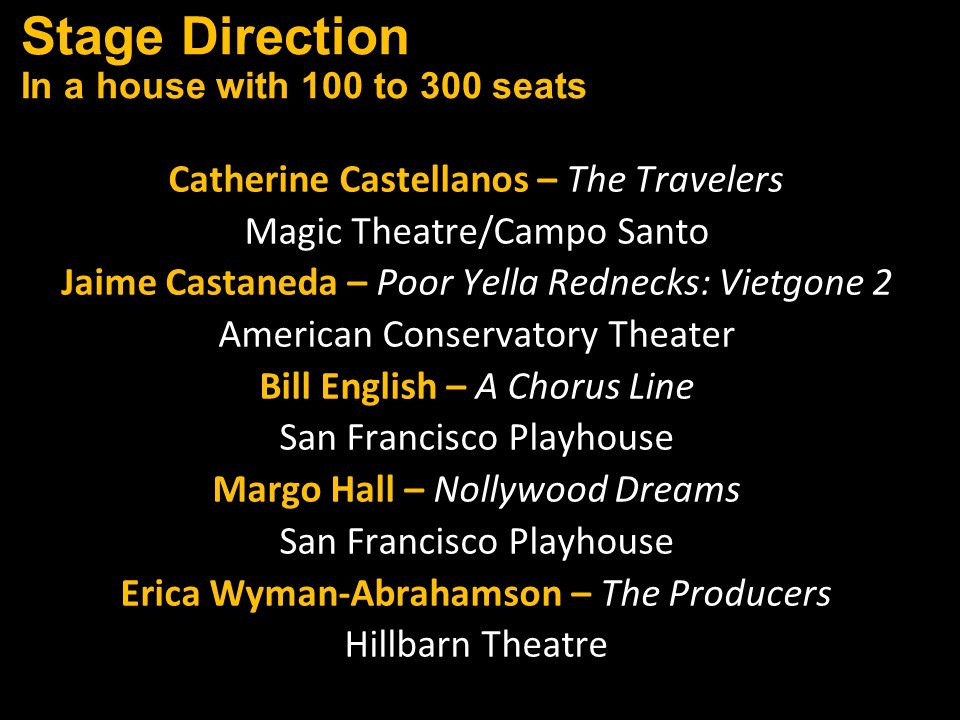 Congratulations again to the entire Bay Area theatre community and our thanks and appreciation to you all for inviting us into your theatrical homes.