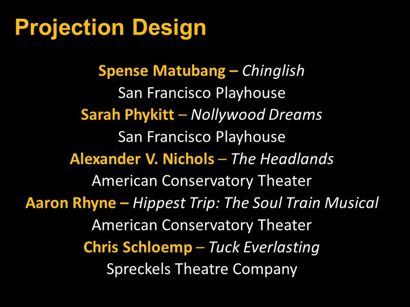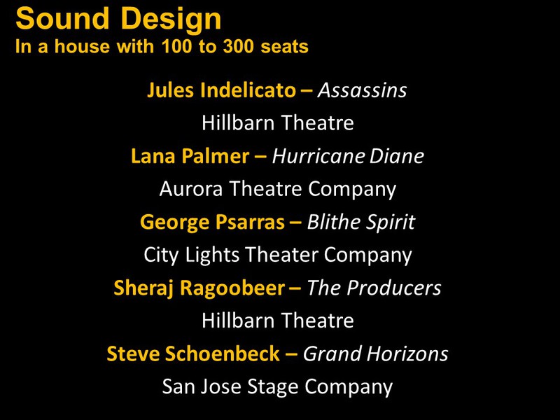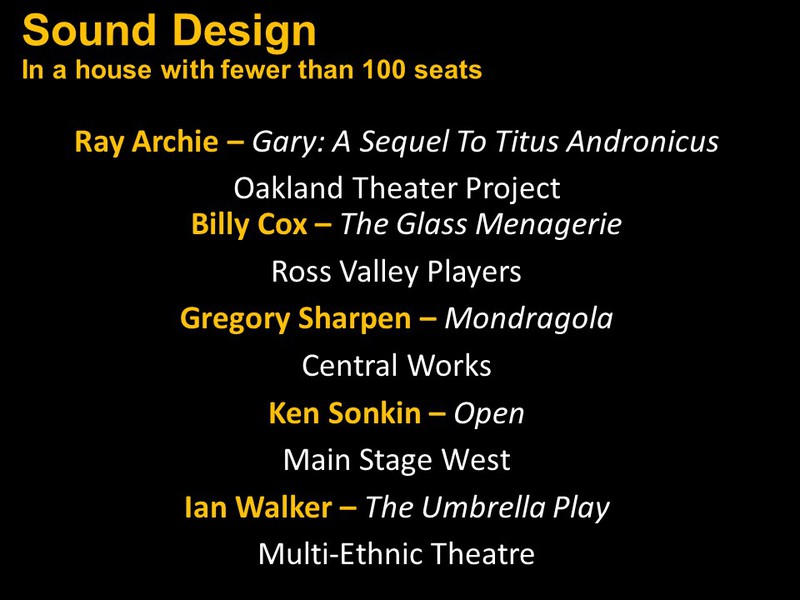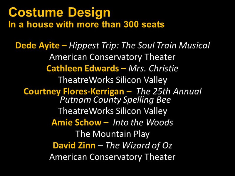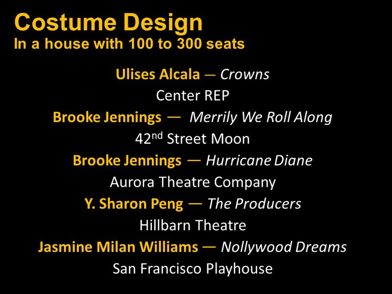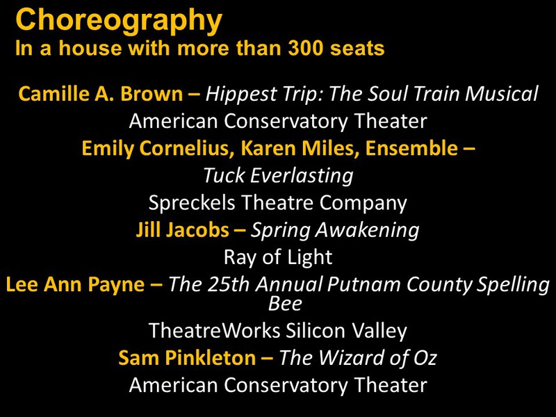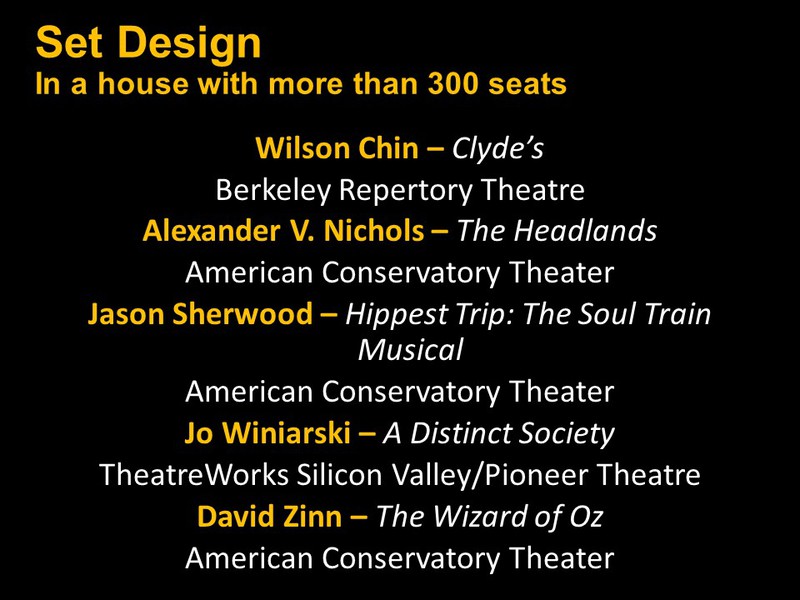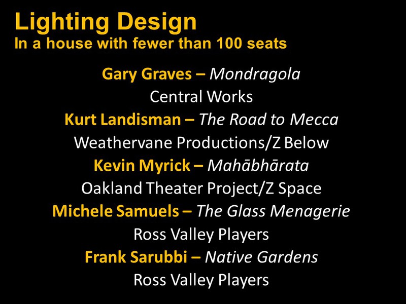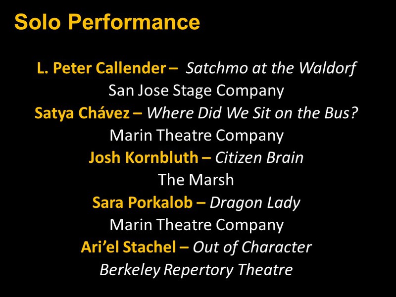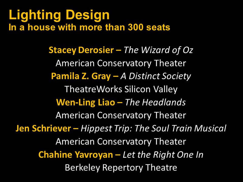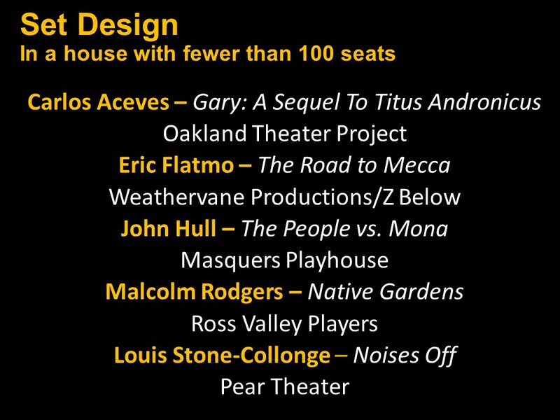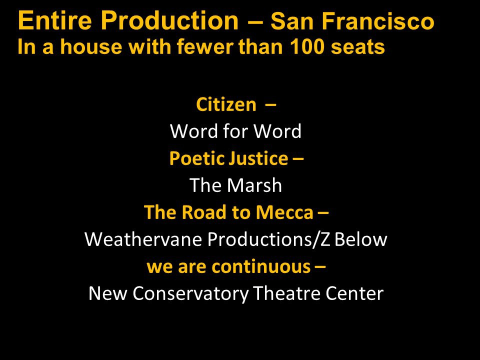 Below you will find two slide shows announcing this year's recipients for Bay Area productions that opened