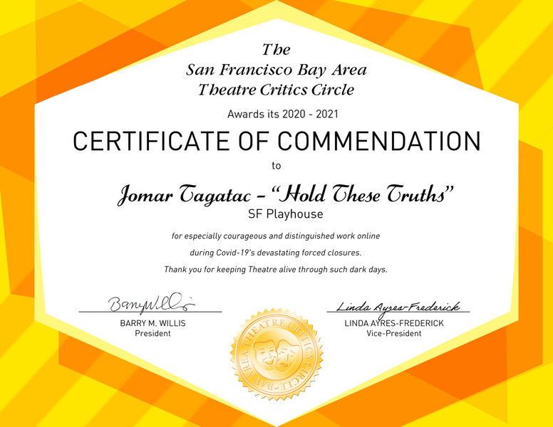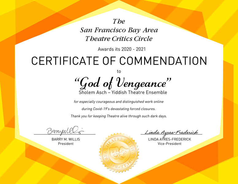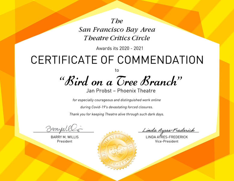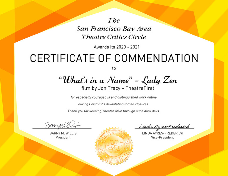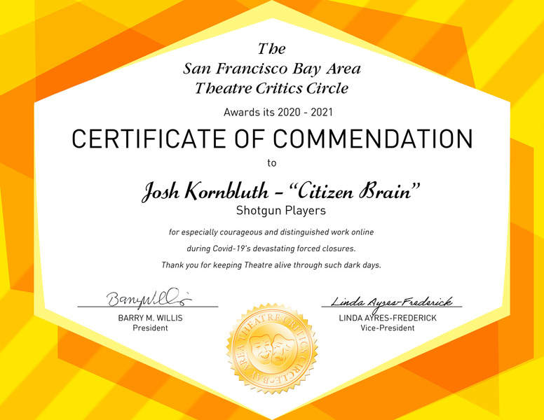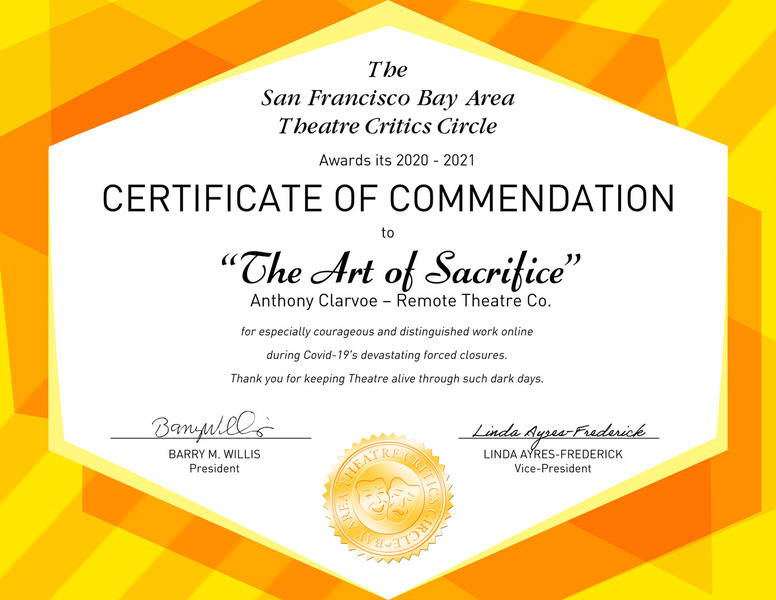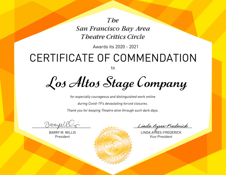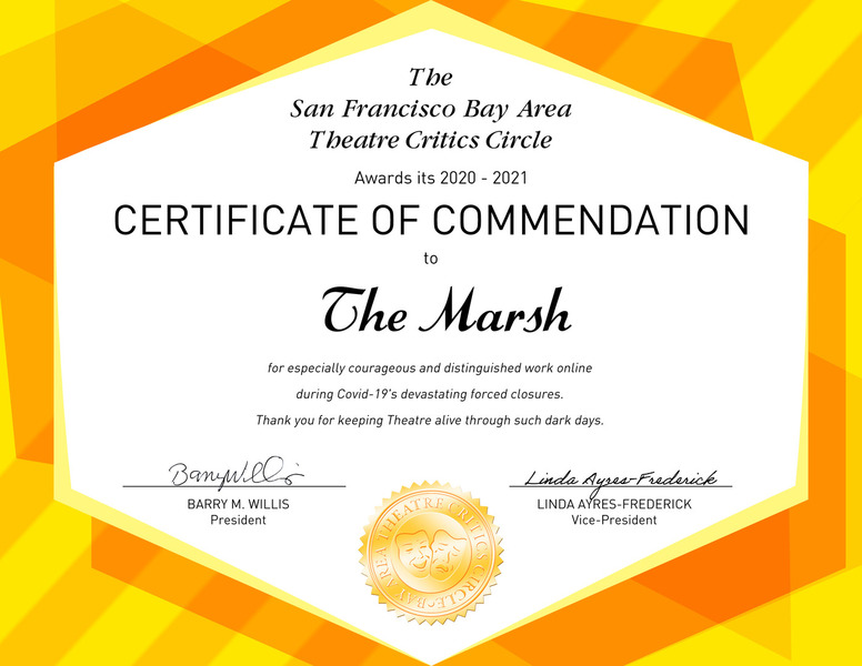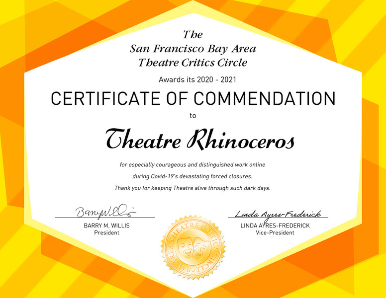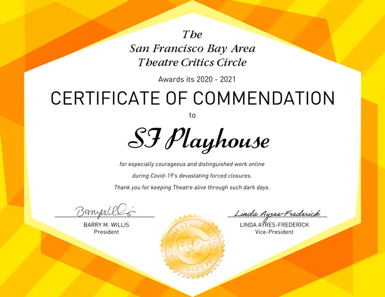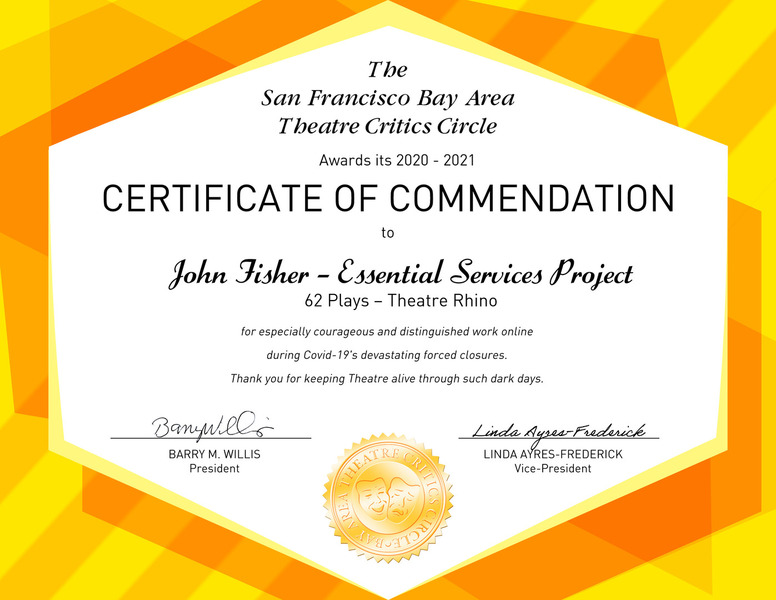 We award our 2020-2021 Certificate of Commendation to the following artists, productions, and theatre companies "for especially courageous and distinguished work online during COVID-19's devastating forced closures."